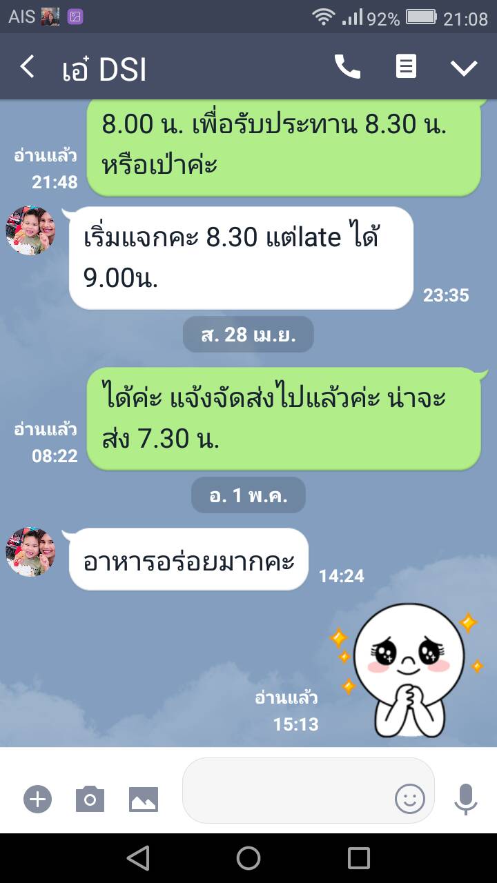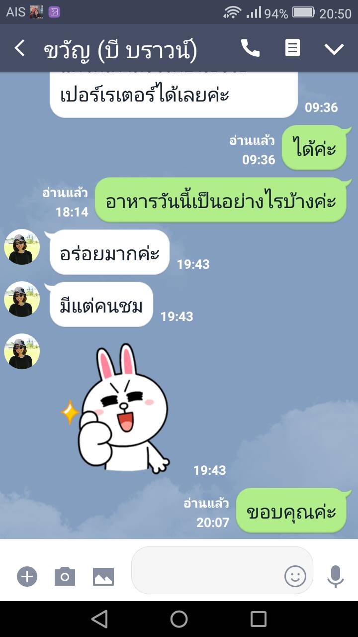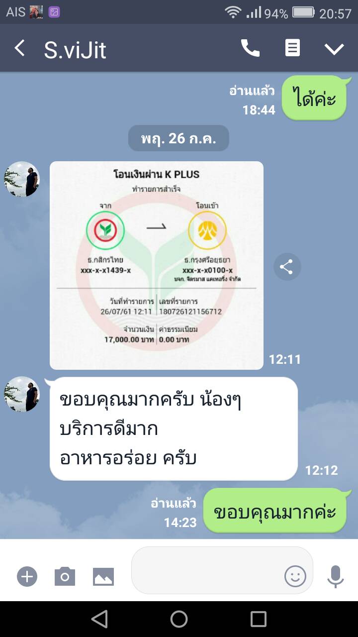 - อาหารปรุงใหม่ มีเนื้อสัตว์เพียงพอต่อแขก ข้าวหอมมะลิและขนมจีนสายรุ้ง